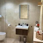 Die Unterkunft bietet einen Blick auf den Pool und verfügt über eine Terrasse und eine Sitzecke mit einer Klimaanlage. Gästen stehen ein Sofa sowie Unterhaltungsmöglichkeiten wie ein Flachbildfernseher mit Satellitenkanälen zur Verfügung. In diesem Apartment sorgen eine Badewanne, eine begehbare Dusche und eine getrennte Toilette für Ihren Komfort. Des Weiterem gibt es einen Haartrockner, Toilettenartikel und Badelaken im Badezimmer.